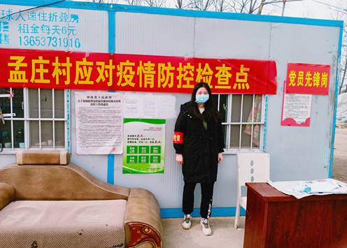 陈方园,体育学院2019级体育教育专业的学生,家住濮阳市台前县后方乡王熬村,得知抗击疫情,和村庄值班人员联系主动去值班,登记外来人员,为他们测量体温,严格执行,虽然值班的地方很简陋,但是一颗服务的心一直火热。
