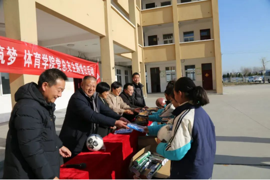 12月16日,体育学院党总支带着满载爱心的体育器材走进了沈丘县三大夫营小学。这些崭新的体育器材不仅丰富了学校的体育设施,更为学生们带来了无限的欢乐与活力,极大地丰富了他们的业余文化生活。
